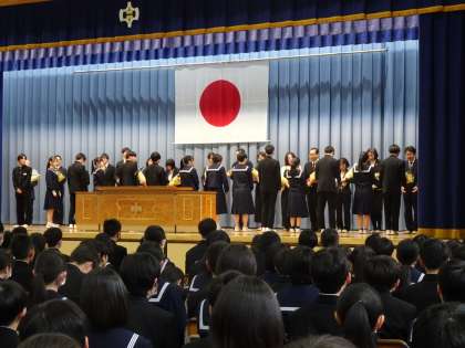 今年度、異動になった教職員の離任式を行いました。お世話になった教職員の方々を2、3年生が見送りました。これまでありがとうございました。