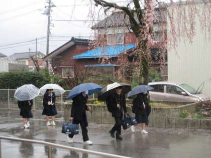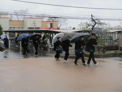 今朝の登校時は雨になりました。今日は全学年で身体測定を行います。本日の下校完了時間は17:20です。で
