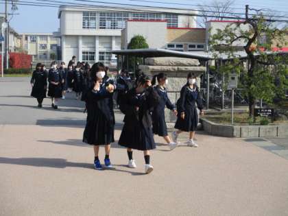 今朝の登校時は晴れになりました。今日は午後から研修会のため、生徒は放課になります。本日の下校完了時間は13:50です。
