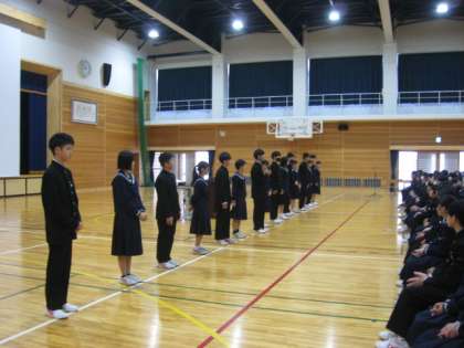 リーダーたちの挨拶と学年目標の発表がありました。これから一年間、この目標を掲げてがんばります。