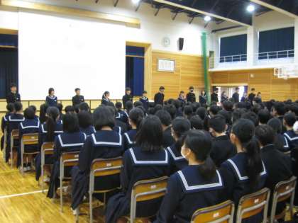 本日3限に学年集会を行いました。2年生前期学年生徒会主催での初めての集会です。