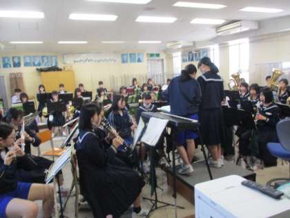 今日は午後から希望制懇談会のため生徒は放課になり、多くの生徒は部活動に取り組みました。写真は吹奏楽部、美術部、コンピュータ部の様子です。