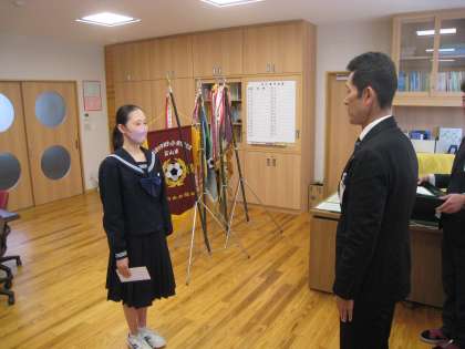 本校の生徒が、アーティスティックスイミングの全国大会に出場します。そこで速星中学校教育振興会から激励金を贈呈しました。