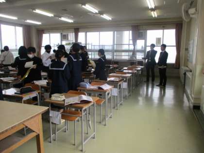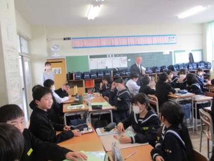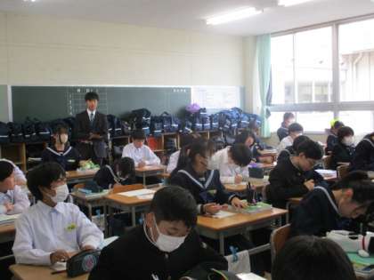 6限、現在の1年生に関わりのある小学校の先生方が中学校を訪問され、小・中学校連絡協議会を行いました。協議の前に1年生の6限の授業を参観されました。
