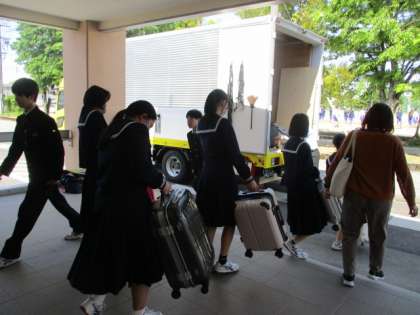 大きな荷物はトラックに積み込みました。先に広島に向けて出発します。3年生は12日(日)6:30にふれあい館駐車場からバスで出発します。