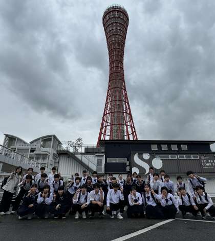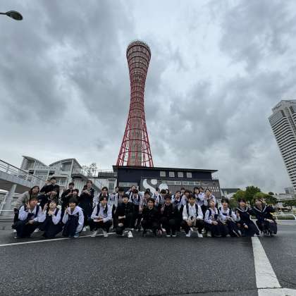 2・4組 ポートタワーの前で集合写真をパシャリ!