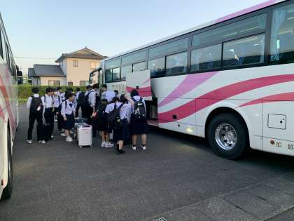 修学旅行一行は、婦中スポーツプラザに到着して解散しました。