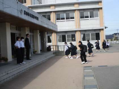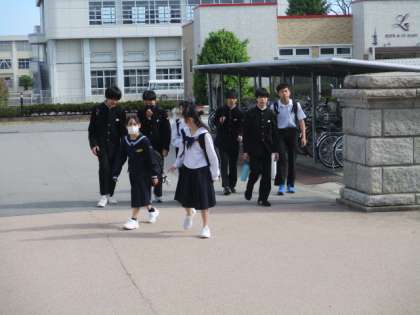 今朝の登校時は晴れになりました。3年生は振替休業日になります。本日の1、2年生の下校完了時間は17:40です。
