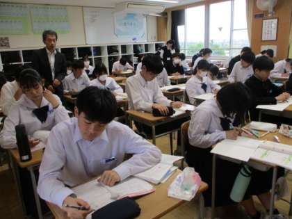 3年生、3限の授業の様子です。写真は上から31H英語、32H英語、33H数学です。