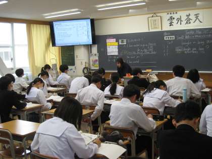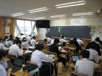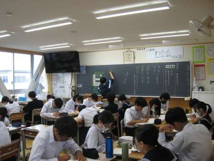 写真は上から1組国語、2組社会(自習)、3組英語の授業の様子です。