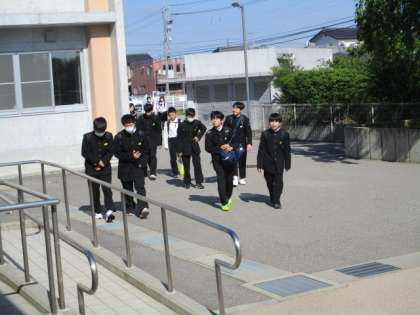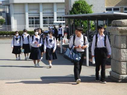 今朝の登校時は晴れになり、青空が広がりました。本日の下校完了時間は16:15です。