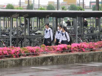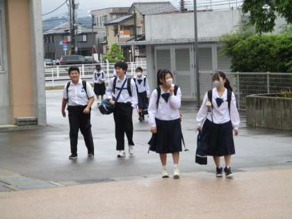 今朝の登校時は小雨になりました。本日の下校完了時間は、17:40です。