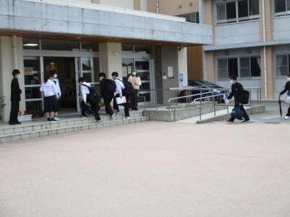 今朝の登校時は曇りになりました。本日の下校完了時間は教育相談を行う生徒を除いて17:10です。