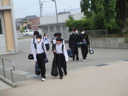 今朝の登校時は晴れになりました。本日の下校完了時間は、部活動に参加する生徒は16:50。教育相談を行う生徒は17:20です。