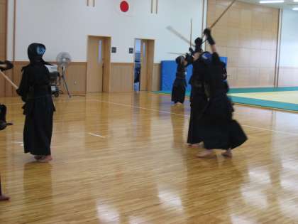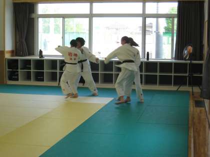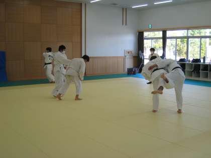 屋内の武道場で活動している柔道部と剣道部の活動の様子です。