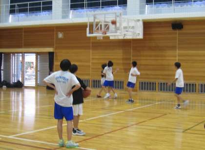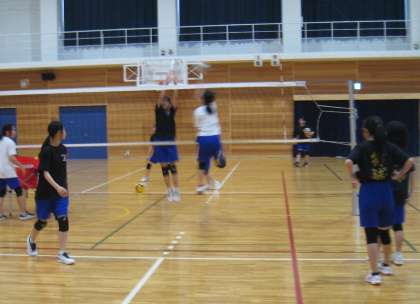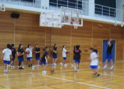 体育館では、男女バスケットボール部とバレーボール部が練習をしていました。