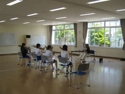 吹奏楽部は、休日はパートごとに分かれて校舎内の教室を有効活用してパート練習に励んでいます。