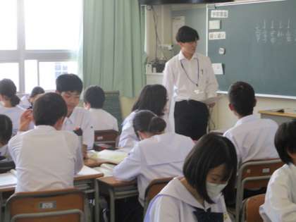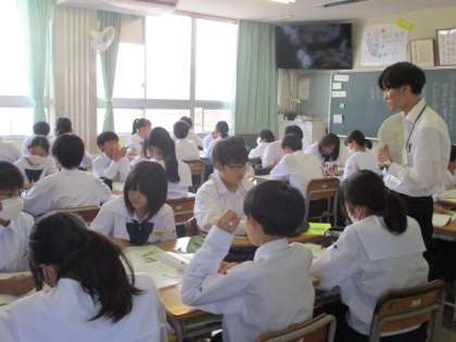 5限、14Hで教育実習生が道徳の授業を行いました。友達についてそれぞれの価値観は異なっていても、互いに理解しようとすることについて考えました。