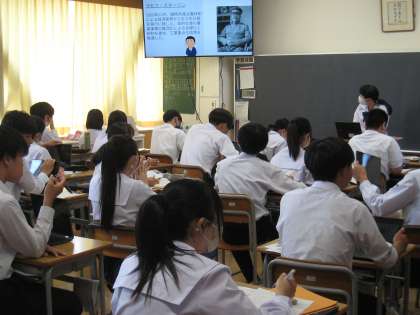 生徒たちは、級友の発表を真剣な眼差しで聞いていました。
