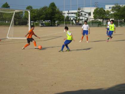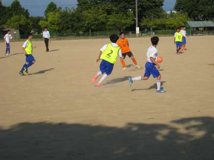 1年生から3年生まで全員でゲーム形式のトレーニングを行っていました。