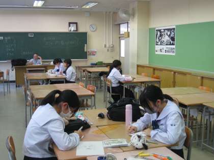 美術室では、美術部が顧問の指導の下で活動をしていました。