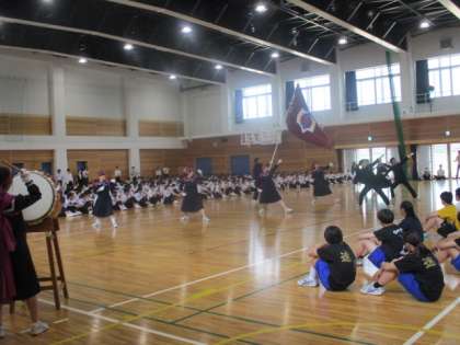 速中応援団による応援です。力強いエールで選手たちを激励しました。