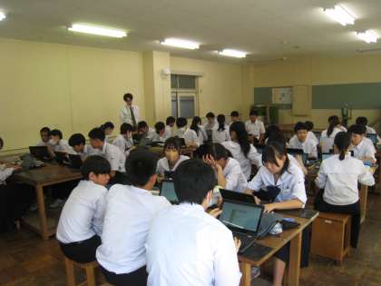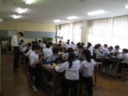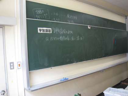 金工室のすぐ外できゅうりを栽培しており、「生物育成のまとめ」をしていました。