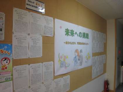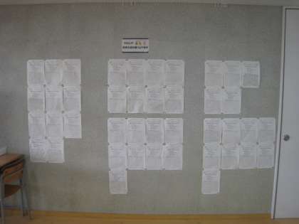 2学期に開催する体育大会に向けて、2学年では団リーダー・実行委員に立候補する生徒の作文を掲示しました。全員、紙いっぱいに体育大会に向けて、リーダーとしての決意表明を記入しています。