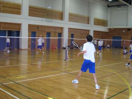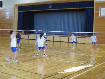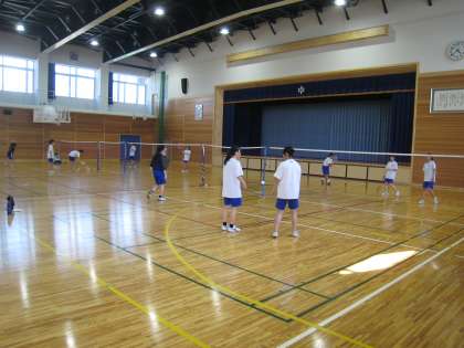 写真は、体育館で活動をしていたバドミントン部の活動の様子です。