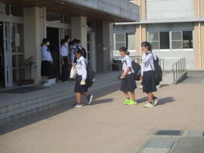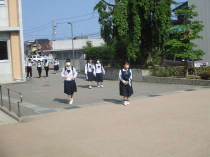 今朝の登校時は晴れになりました。日差しも強く暑く感じます。本日の下校完了時間は15:55です。