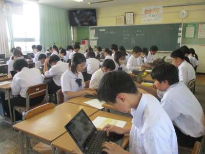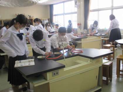 4限の1年生の授業の様子です。写真は上段から11H理科、12H理科、13H美術です。