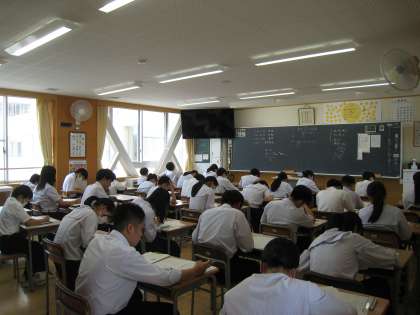 2年生、3限目の数学の期末考査の様子です。