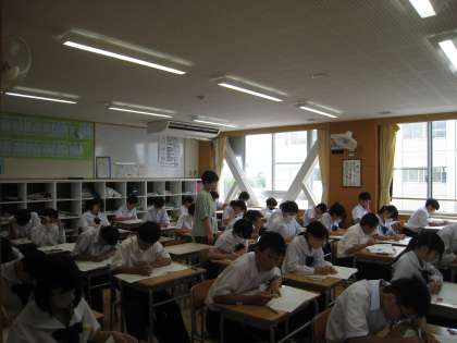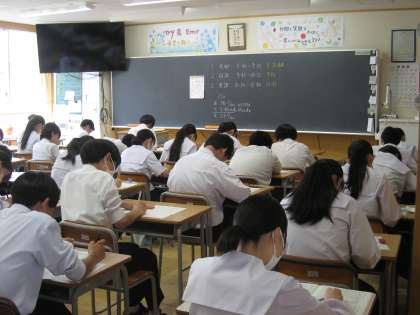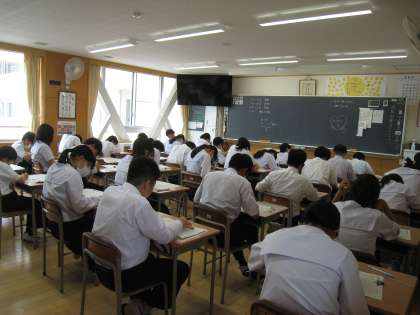 写真は2年生の2限目、国語のテストの様子です。