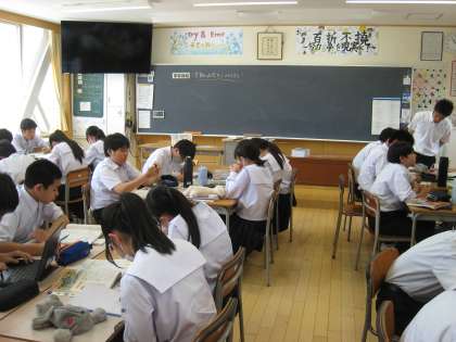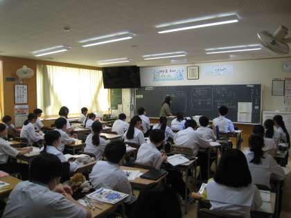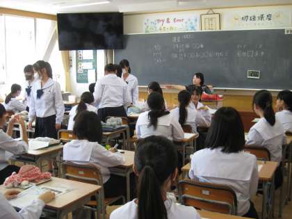 写真は上から25H社会、25H・27H女子保健体育、28H家庭科の授業の様子です。