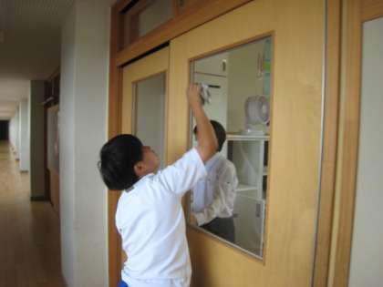 今日は教室、トイレの清掃と掲示物作りをしています。