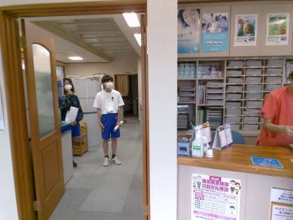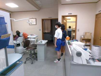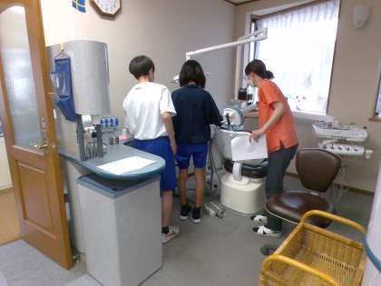 器具の説明を受けたり、患者さんを席まで案内して治療の準備をしたりと、真面目に取り組んでいます。