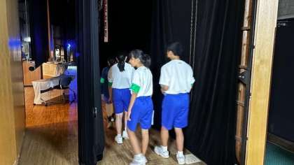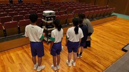 印刷物を届けにお遣いに出たり、ホールやステージの設備の見学をしました。
