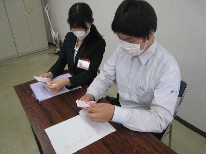 社員の方にお話を伺ったり、「札勘」と呼ばれるお札を数える体験をしたりしました。