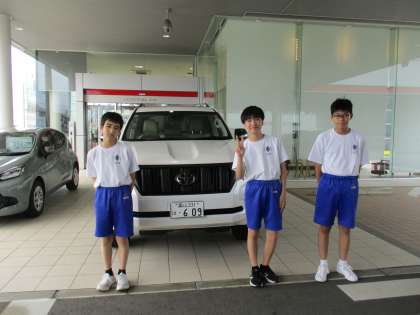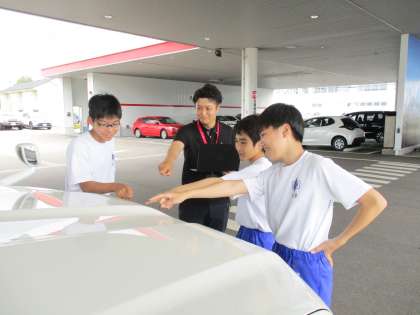 トヨタモビリティ富山南店での活動の様子です。自動車の査定を体験していました。
