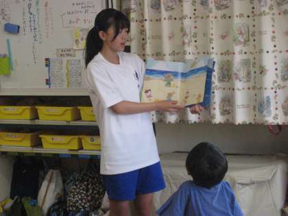 絵本を読んだり、一緒に遊んだりと元気に子どもたちと関わっていました。