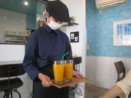 料理を盛りつけたり、お客さんに運んだりと様々な仕事に取り組んでいました。