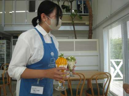 注文をとったり、パフェを運んだりと熱心に仕事に励んでいました。