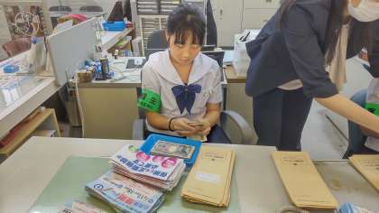 パンフレットの梱包作業や紙幣を素早く数えていました。