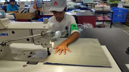 自動車に使われるクッションを作成したり、部品の梱包作業をしました。