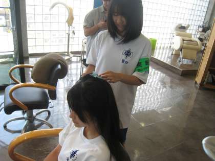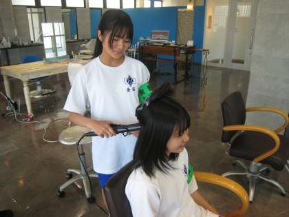 ヘアアレンジの方法を習っていました。