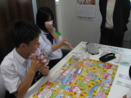 ライフサイクルの人生ゲームを通して、楽しみながら今後の生活とお金について学びました。