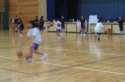 体育館では、バレーボール部と女子バスケットボール部が2年生を中心に練習をしていました。