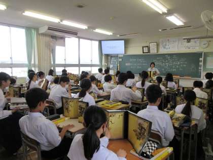 写真上から11H社会、12H美術、13H数学の授業の様子です。