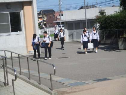 今朝の登校時は晴れになりました。今日は体育大会実行委員任命式、団旗授与式が行われます。本日の下校完了時間は16:50です。