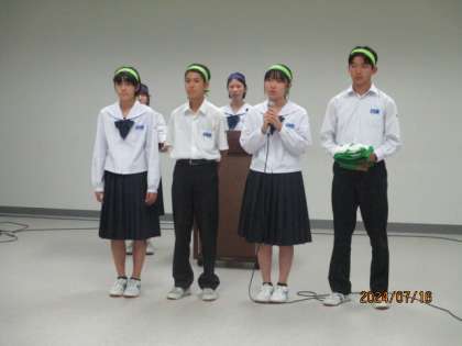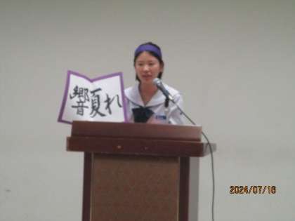 同じく、青雲団と緑風団です。その後、実行委員長が大会に臨む思いを大会スローガンの紹介とともに述べました。18日(木)には団員が集まり、団結成を行う予定です。